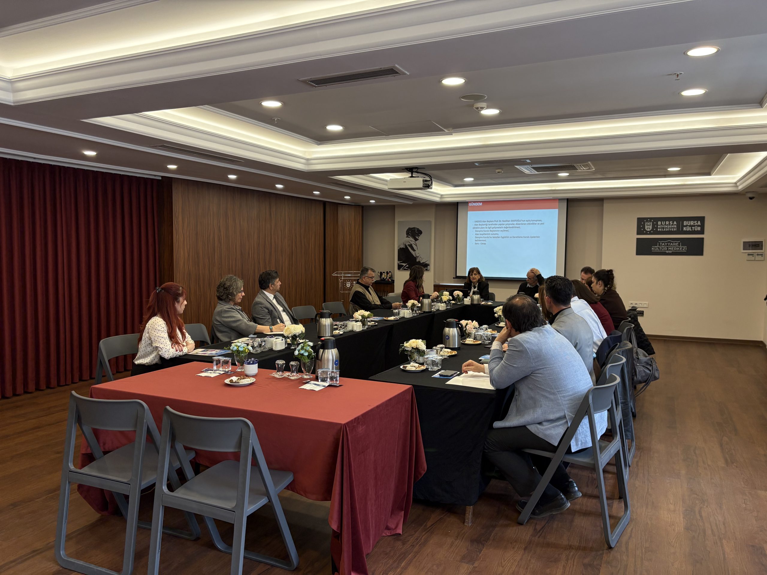 “Alan Yönetimi ile Anıt Eser Kurulunun Kuruluş ve Görevleri ile Yönetim Alanlarının Belirlenmesine İlişkin Usul ve Esaslar Hakkında Yönetmelik” in 15. maddesinde yer alan ‘Danışma Kurulu yılda en az bir kere toplanır.’ hükmü uyarınca, Bursa Alan Başkanlığı Danışma Kurulu üyeleri görüş ve önerilerinin alınması amacıyla, Alan Başkanı Prof. Dr. Neslihan DOSTOĞLU’ nun koordinasyonunda 17 Nisan 2026 tarihinde Tayyare Kültür Merkezi’nde toplandı.
